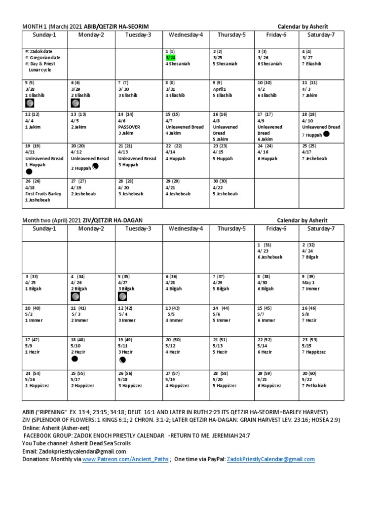 2021 2022 Zadok Priestly Calendar Pdf Pdf Calendar Jewish Law And Rituals